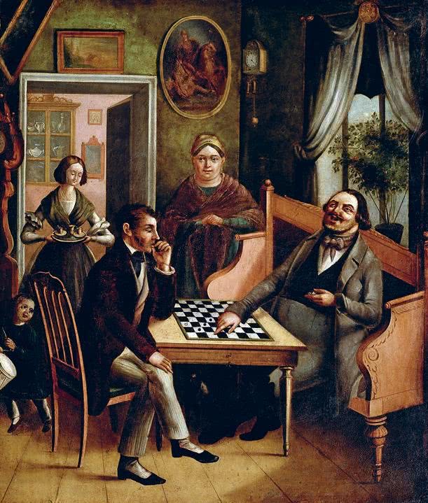 Купцы играют в шашки. И.С. Дощенников