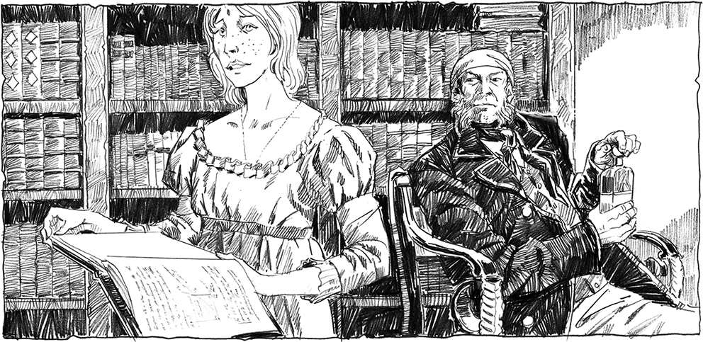 Беседовали в библиотеке. Александра говорила, Полина Афанасьевна слушала, англичанин жевал табак и с важностью кивал головой на каждое понятное ему слово.