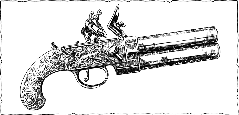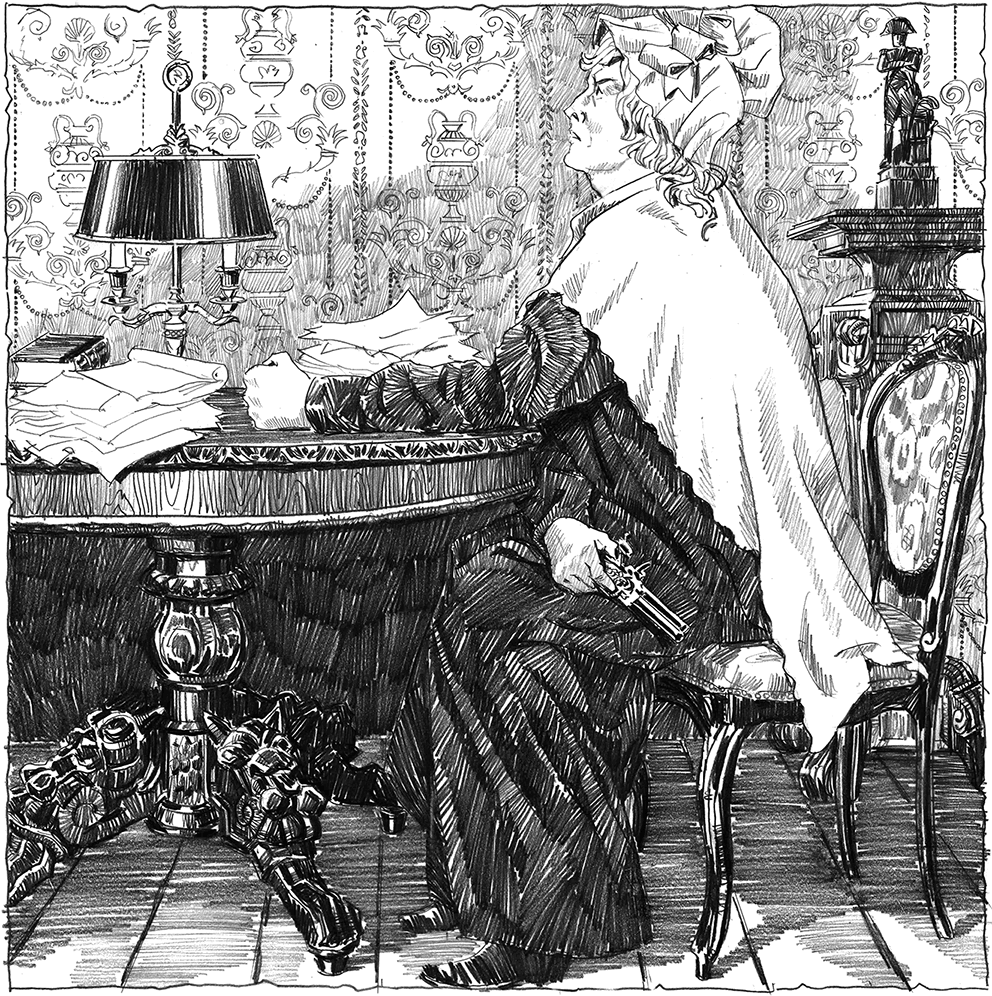 Мельника должны были привести в кабинет. Катина спустилась туда первая, села за стол, заваленный хозяйственными бумагами. Правую руку держала на коленях. В ней малый двухствольный пистолет, с которым помещица обычно путешествовала. Два курка, два спуска, две свинцовых пули.