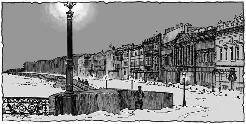 Обустроился Водяной недурно. Он изображал сбитенщика. От холода укрывался тулупом, попивал горячий пряный напиток. По вечернему времени и неласковой погоде прохожие на набережной отсутствовали, и удивляться этой странной торговле было некому.