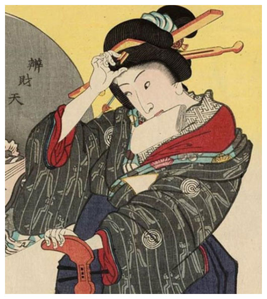 Как мы помним, всем текучим – от времени до музыки – ведала богиня-покровительница Бэнтэн, так что в категорию укиё попадали и так называемые «низкие жанры» искусства – то, что сегодня называется «массовой культурой». Например, прославленная японская гравюра называлась укиёэ – Картинки Текучего Мира.