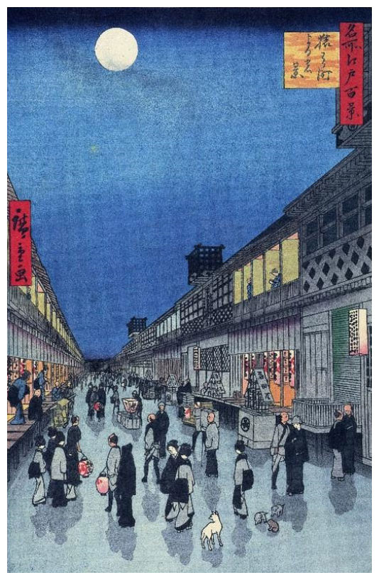 Вечерний театральный квартал в Асакусе на картине Хиросигэ