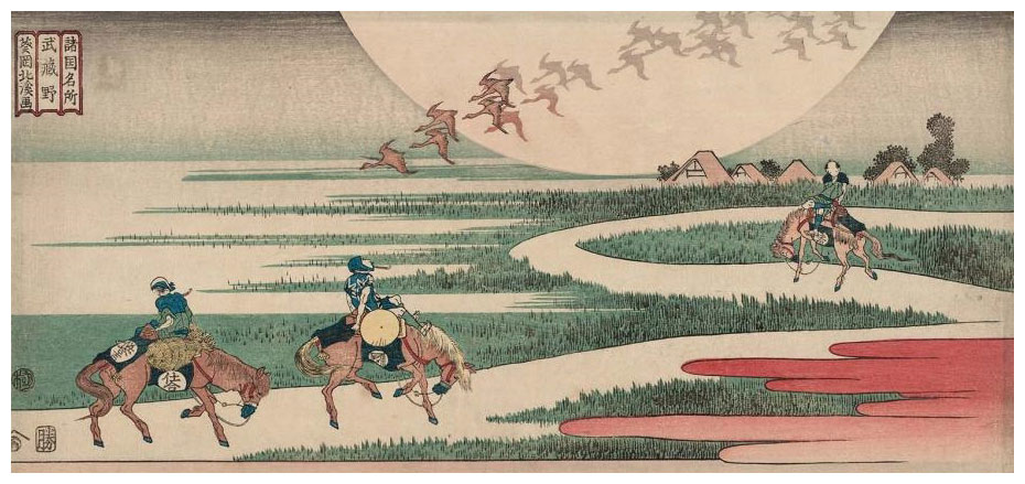 В стране, почти сплошь состоявшей из гор, обширное открытое пространство было отдыхом для ног и для глаза, поэтому японцы долину Мусаси очень любили, поэтично воспевали и красиво рисовали.