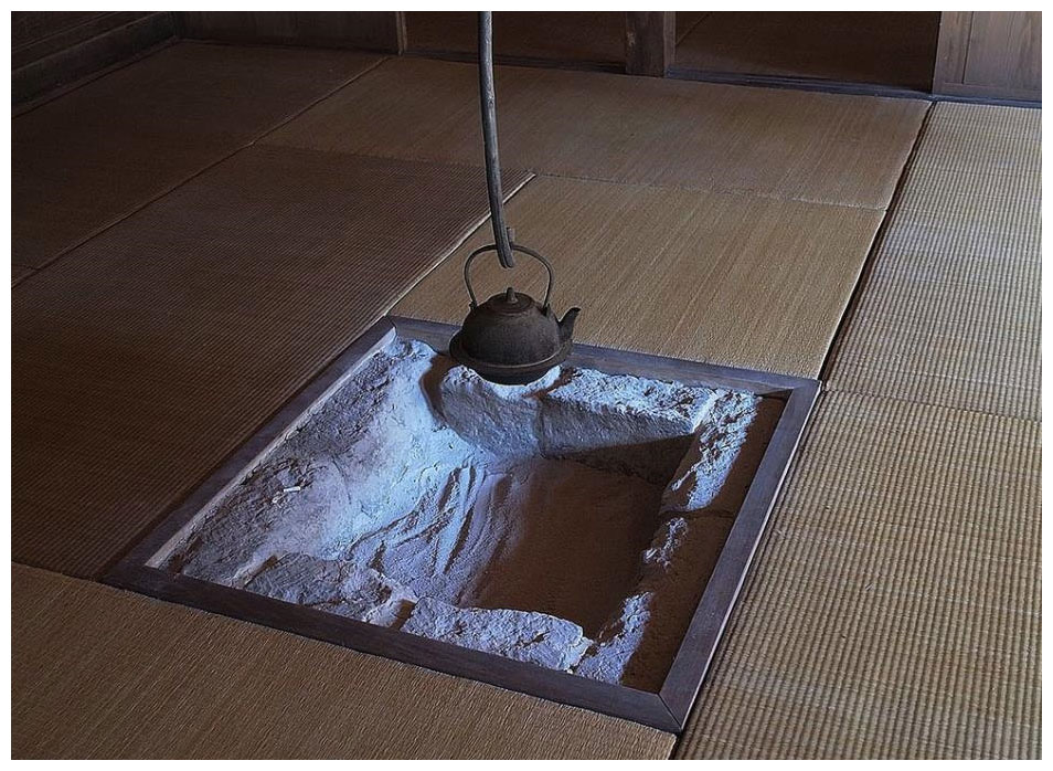 Японцы обычно сооружали ирори, очаг, в нише пола. Нишу облицовывали камнем, а на огне готовили пищу. В холодное время это был единственный источник тепла, поэтому на ночь вокруг ирори укладывались спать.