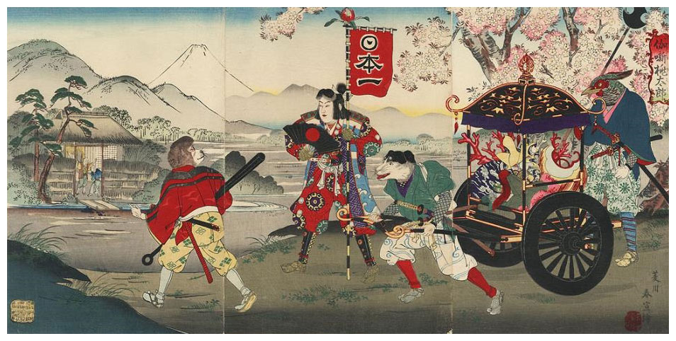 Богиня Бэнтен – еще одно (как и Бисямон) «божество счастья», и единственная среди них дама. Она покровительствует всему текучему – прежде всего воде и времени. Но поскольку в Японии мир искусства называется Текучим Миром, попечительство над ним тоже досталось грациозной богине. Изображают ее обычно с лютней, но лично для меня важнее всего, что Бэнтэн царствует над словами и письменами, ибо хорошая речь и плавный текст льются, как река.