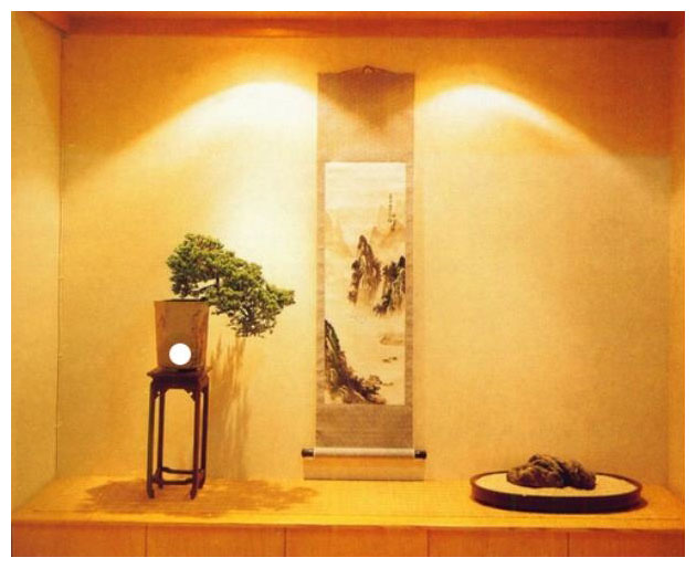 Но бонсай, как на нижнем снимке, у людей строгих правил считается элементом чересчур легкомысленным, потому что бонсай живой, а это несет в себе элемент непредсказуемости. Вдруг засохнет? Ужасное предзнаменование для дома.