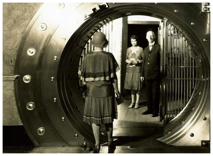Эта фотография дает некоторое представление о том, как серьезно в двадцатые годы банки относились к защите своих депозитариев.