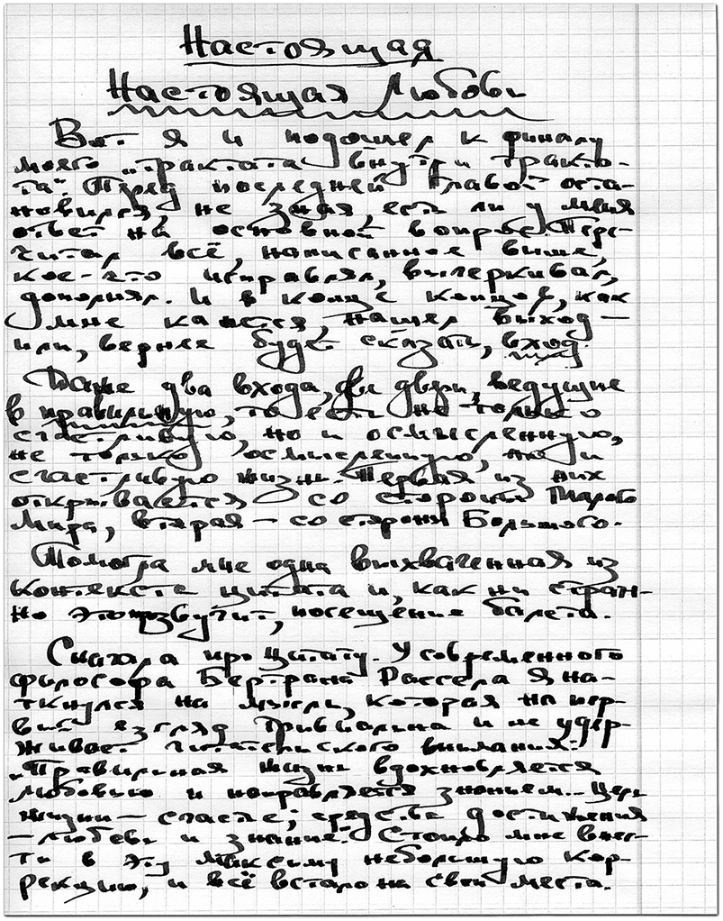Сначала про цитату. У современного философа Бертрана Рассела я наткнулся на мысль, которая на первый взгляд тривиальна и не удерживает читательского внимания: «Правильная жизнь вдохновляется любовью и направляется знанием… Цель жизни – счастье; средства достижения – любовь и знание». Стоило мне внести в эту максиму небольшую коррекцию, и всё встало на свои места.