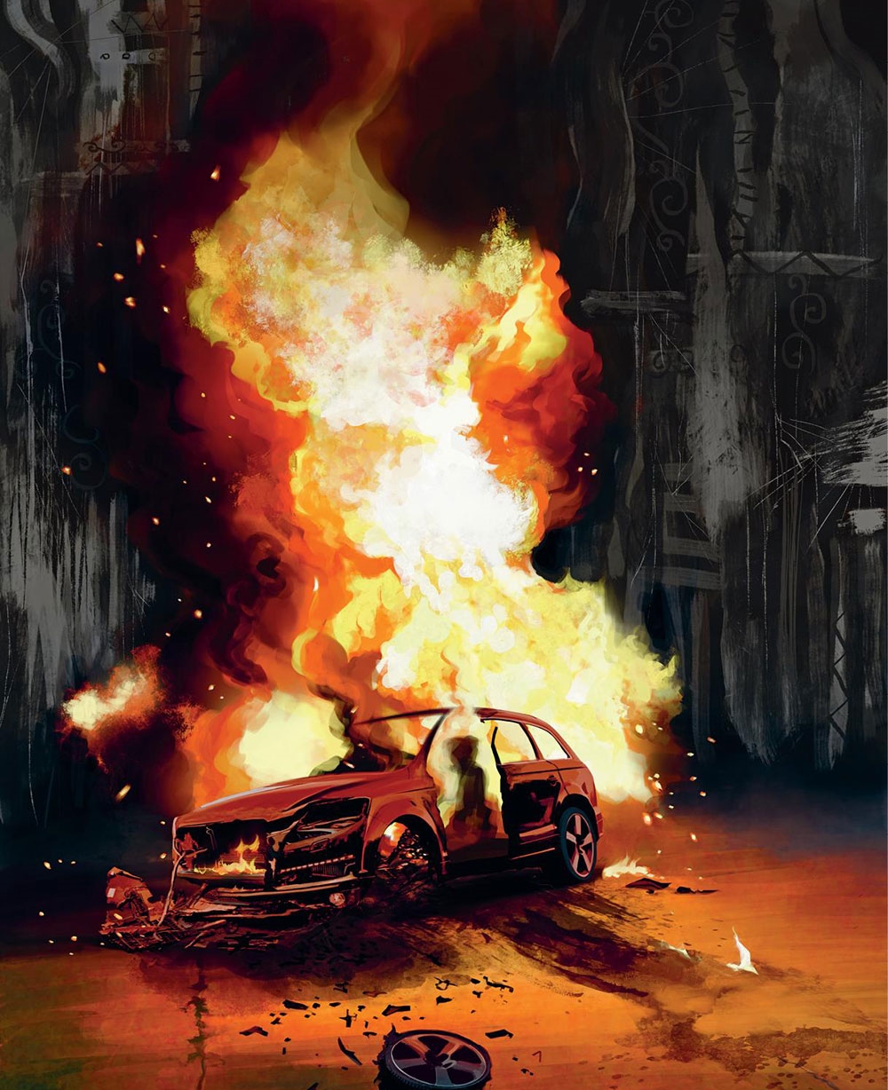 Рама дрогнула. Задребезжало стекло. Вместо «ауди» на тротуаре надулся и лопнул пузырь из огня и дыма.