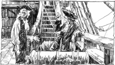 Зато со штурманом мы быстро сошлись. Это был человек легкий, веселый, не похожий на бретонских моряков и к тому же превосходный рассказчик. Он охотно обучал Летицию азам навигации, названиям всех бесчисленных парусов. Элементов рангоута и такелажа, а также прочим морским премудростям. Близнецы-лейтенанты или их папаша артиллерист раздражались, если слушатель не мог уразуметь, что такое «огоны выбленочных узлов, прибезелеванные к ванту» или «нижний юферс фор-стеньлог-штага», зато ирландец был неизменно терпелив и изъяснялся на понятном сухопутному человеку языке. Возможно, Логан тратил столько времени на болтовню с юным лекарем, потому что тоже чувствовал себя чужаком среди команды, сплошь состоявшей из родственников, свояков и кумовей. Я, например, заметил, что ирландец подолгу разговаривал и с Клещом, кажется, нисколько не тяготясь столь тоскливым собеседником.