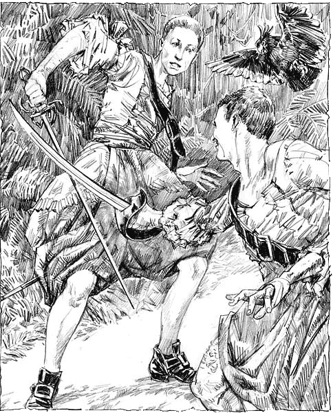 – Глупый умник. Пока эта штука была у меня в руках, я вынул кремень. Иначе разве я дал бы тебе подобрать пистолет? Обнажай свою шпагу, докторишка. Развлечемся.