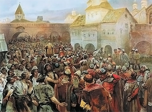 Так, в 1257 году произошло народное возмущение, погрузившее город в затяжной политический хаос. Монгольские послы добрались до Новгорода, чтобы собрать с него десятину – обычную дань, взимавшуюся с покоренных областей. Великий князь Александр Невский, бывший в то время и князем новгородским, этому не противился, понимая, что перечить хану опасно. Сознавала это и боярская верхушка. Но простому народу соображения государственной политики были чужды, о разорении остальной Руси в Новгороде знали только понаслышке, и новый, невиданный прежде побор показался «черным людям» боярскими кознями. Татарских послов прогнали, городских начальников поубивали, посадили на их место собственных избранников. Наместник, сын великого князя, бежал.