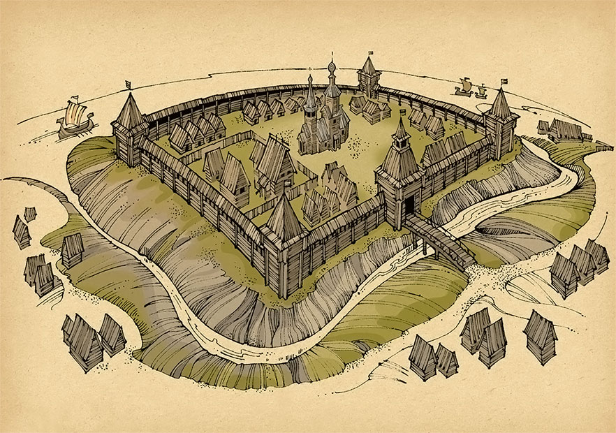 У нас есть лишь фрагментарное представление о том, как выглядели древнерусские города и как была устроена их жизнь. Подробных описаний нет, планировка давно изменилась, кремли и соборы, даже если они всё еще стоят, многократно перестраивались – ведь главным строительным материалом было дерево.