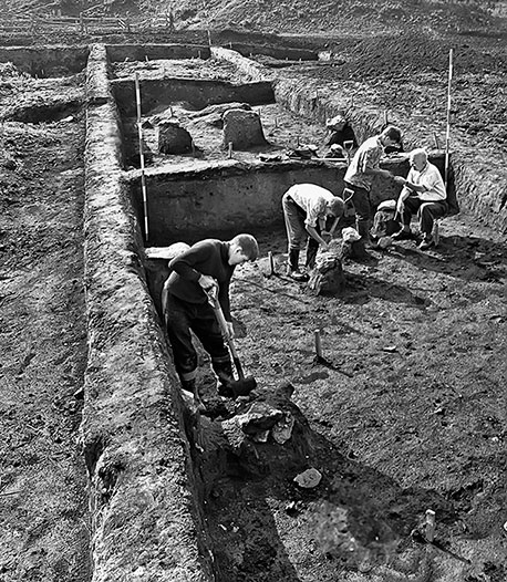 Участники археологической экспедиции работают на раскопках старой крепости в селе Звенигород-Галицком
