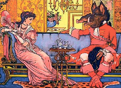 Царь и царица на прогулке в сопровождении фрейлины
