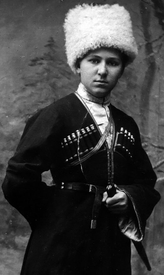 Это была миловидная и стройная девица в белой рубахе с погонами унтер-офицера и одним или двумя Георгиевскими крестиками, в кавалерийских синих бриджах и сапогах со шпорами. Мне успели шепнуть, что Ниночка – из хорошей семьи, ведет себя безупречно и вполне заслуживает свои Георгиевские крестики…».