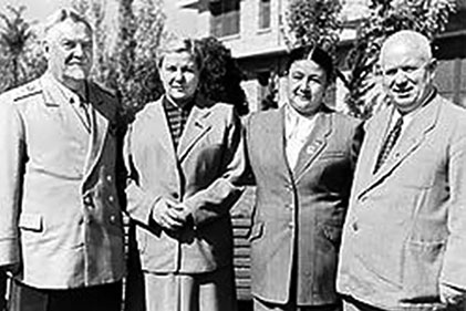 Тов. Насриддинова, с которой собрали хороший урожай (рядом с Никитой Сергеевичем)