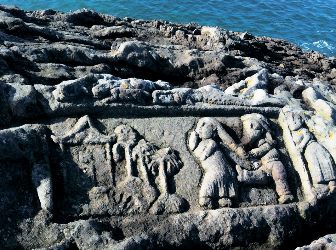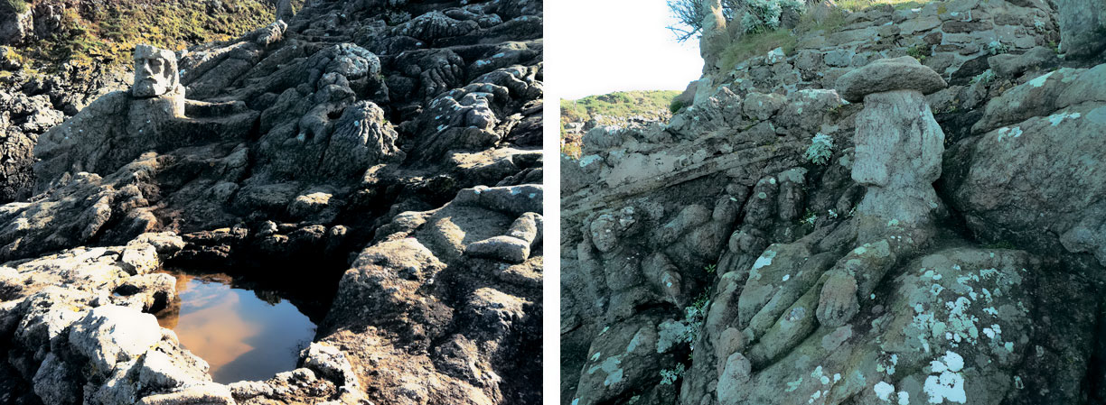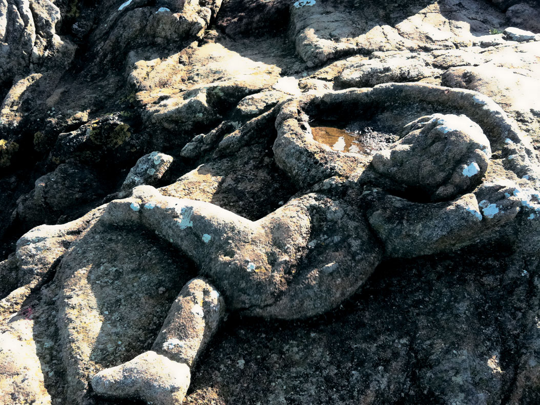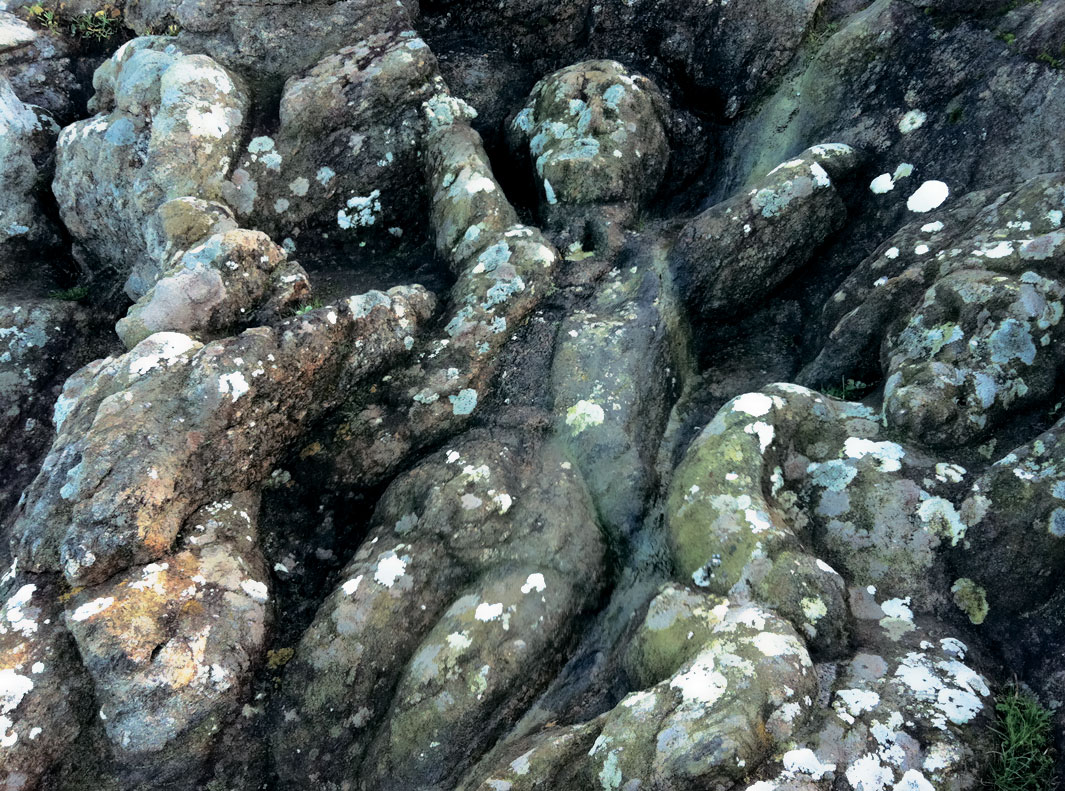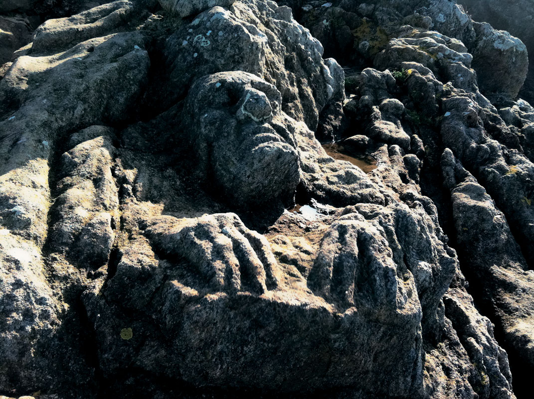 С другой – обрыв. Во время прилива вода поднимается выше, чем на десять метров. Крутой скос берега покрыт бугристым каменным панцирем, на первый взгляд похожим на застывшую лаву.