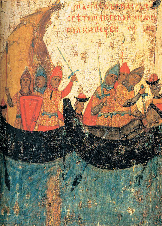 Святой же плыл в это время в ладье, и они встретили его в устье Смядыни. И когда увидел их святой, то возрадовался душою, а они, увидев его, помрачнели и стали грести к нему, и подумал он – приветствовать его хотят. И, когда поплыли рядом, начали злодеи перескакивать в ладью его с блещущими, как вода, обнаженными мечами в руках. И сразу у всех весла из рук выпали, и все помертвели от страха. Увидев это, блаженный понял, что хотят убить его. И, глядя на убийц кротким взором, омывая лицо свое слезами, смирившись, в сердечном сокрушении, трепетно вздыхая, заливаясь слезами и ослабев телом, стал жалостно умолять: «Не трогайте меня, братья мои милые и дорогие! Не трогайте меня, никакого зла вам не причинившего! Пощадите, братья и повелители мои, пощадите! Какую обиду нанес я брату моему и вам, братья и повелители мои? Если есть какая обида, то ведите меня к князю вашему и к брату моему и господину. Пожалейте юность мою, смилуйтесь, повелители мои! Будьте господами моими, а я буду вашим рабом. Не губите меня, в жизни юного, не пожинайте колоса, еще не созревшего, соком беззлобия налитого! Не срезайте лозу, еще не выросшую, но плод имеющую! Умоляю вас и отдаюсь на вашу милость. Побойтесь сказавшего устами апостола: “Не будьте детьми умом: на дело злое будьте как младенцы, а по уму совершеннолетни будьте”. Я же, братья, и делом и возрастом молод еще. Это не убийство, но живодерство! Какое зло сотворил я, скажите мне, и не буду тогда жаловаться. Если же кровью моей насытиться хотите, то я, братья, в руках ваших и брата моего, а вашего князя».