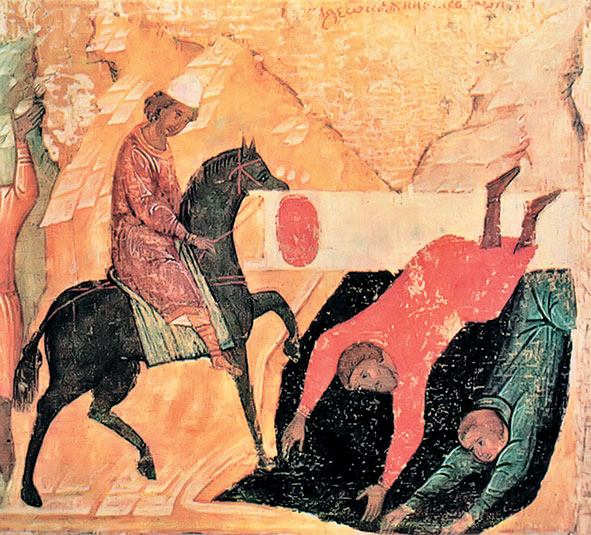 И, помышляя так в уме своем, пошел к брату своему и говорил в сердце своем: «Увижу ли я хотя бы братца моего младшего Глеба, как Иосиф Вениамина?» И решил в сердце своем: «Да будет воля твоя, Господи!» Про себя же думал: «Если пойду в дом отца своего, то многие люди станут уговаривать меня прогнать брата, как поступал, ради славы и княжения в мире этом, отец мой до святого крещения. А ведь все это преходяще и непрочно, как паутина. Куда я приду по отшествии своем из мира этого? Где окажусь тогда? Какой получу ответ? Где скрою множество грехов своих? Что приобрели братья отца моего или отец мой? Где их жизнь и слава мира сего, и багряницы, и пиры, серебро и золото, вина и меды, яства обильные, и резвые кони, и хоромы изукрашенные и великие, и богатства многие, и дани и почести бесчисленные, и похвальба боярами своими? Всего этого будто и не было: все с ним исчезло, и ни от чего нет подспорья – ни от богатства, ни от множества рабов, ни от славы мира сего. Так и Соломон, все испытав, все видев, всем овладев и все собрав, говорил обо всем: “Суета сует – все суета!” Спасение только в добрых делах, в истинной вере и в нелицемерной любви».