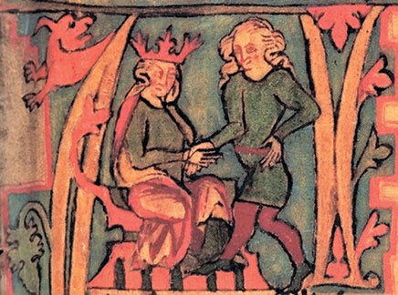 Король Харольд I получает Норвегию из рук своего отца. Иллюстрация из «Книги с Плоского острова»