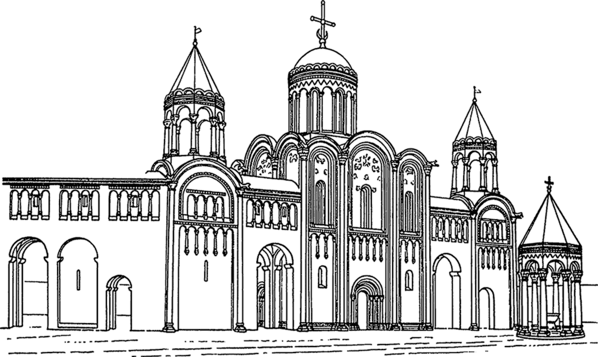 Князь Андрей и город Владимир неприступным сделал, к нему он ворота золотые соорудил, а другие – серебром отделал, и создал соборную каменную церковь в честь святой Богородицы, весьма прекрасную, и разными украшеньями осыпал ее из золота и серебра, и пять куполов ее вызолотил, а все три церковные двери золотом выложил и дорогими каменьями, и жемчугом украсил ее драгоценным, и всяким узорным литьем расцветил, и обильем светильников золотых и серебряных ее осветил, и амвон из золота и серебра поставил, а служебные сосуды и опахала и другие украшения церковные – все золотом и драгоценным каменьем, и жемчугом крупным в изобилии осыпал. Три же дарохранительницы, очень большие, из чистого золота, из камней драгоценных поставил: и видом своим, и работой до удивленья подобны они Святая Святых Соломона. И в Боголюбове, и в городе Владимире купола золотые поставил, и своды позолотил, и стены внутри каменьем по злату осыпал, столбы позлатил, и снаружи ее и по сводам птиц золотых, и кубки, и паруса, литые из золота, поставил по церкви по всей и по сводам кругом.