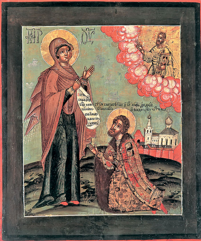 Богоматерь Боголюбская, с припадающим святым князем Андреем Боголюбским. XVIII в.