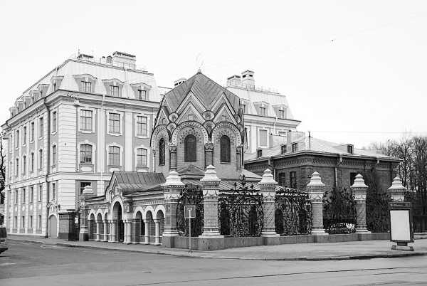 [Закрыть], на самом деле композиция здания пронизана архитектурными цитатами. Более того, чтобы добиться безусловной узнаваемости национальных черт, архитектор стремился к исторической достоверности всех элементов. Другое дело, что они неизбежно преломлялись в духе эклектического или академического метода.