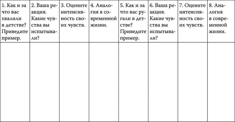 При подробном заполнении этой таблицы можно выявить большинство механизмов, заложенных в структуре самооценки.