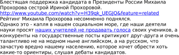 И если это предложение было бы принято в прямом эфире на основе доверия к М. Прохорову – выборы прошли бы интереснее.