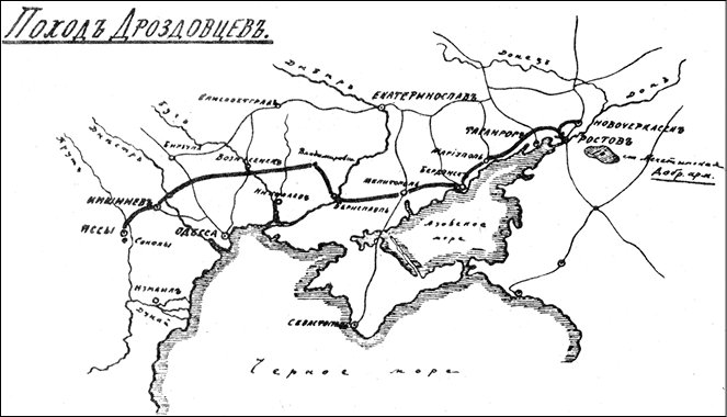 Карта похода дроздовцев Яссы – Дон