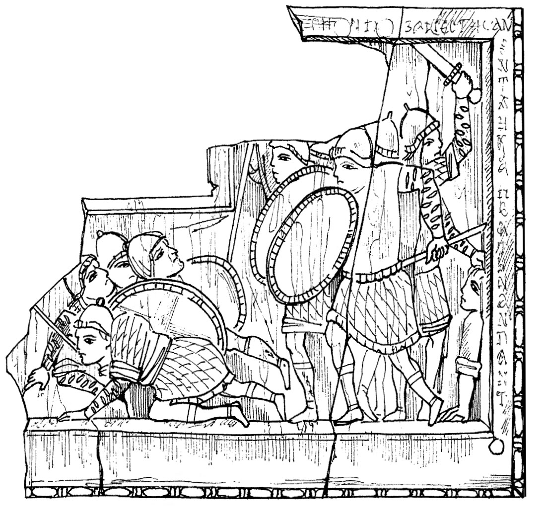 И они поскакали к дружине, которая стояла за южными воротами города Киева. При его приближении дружинники вырвали мечи из ножен и трижды ударили ими о щиты.