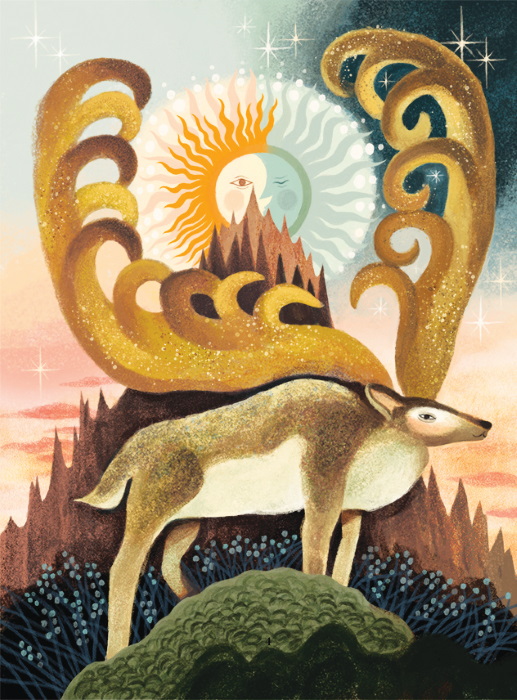 Дочь господина Месяца, Лунного света шаманка захлопотала, одежду-уборы собирает, сзывает приданый скот.