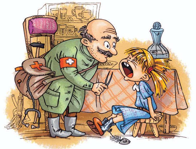 Шофёр пустил машину. Доктор приехал к Вале, достал свои щипчики и вынул из горла косточку.