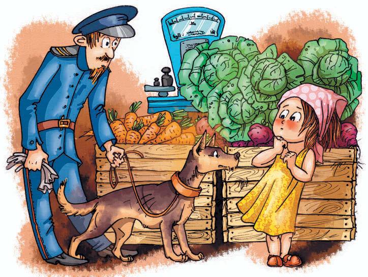 Все расступились, человек подвёл собаку к Саше. Саша думала, что собака её сейчас начнёт кусать. Но собака только её нюхала и фыркала. А милиционер в это время спрашивал Сашу, где она живёт. Саша просила милиционера, чтобы он ничего маме не говорил. А он смеялся, и все кругом тоже смеялись. А тот человек с собакой уже ушёл.