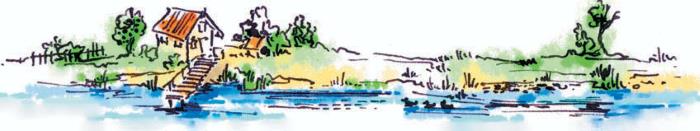 – В песок ткнулись. Сели на мель. Сейчас я спихну. А вон домик.