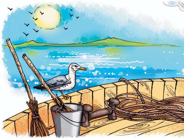 Тут один старик сидел на пристани и ловил скумбрию. Я стал кричать: «Фуражка, фуражка!» Он увидал, подцепил удилищем, стал подымать, а она вот-вот свалится, он и стряхнул её на дубок. За фуражкой можно ведь пойти на дубок?