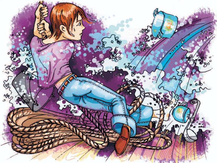 Вдруг чувствую, понесло-понесло меня на гребешке, высоко, как на руках, подняло, и сердце упало: сейчас зыбь лопнет, как трахнет об песок! Не буду живой! А тут верёвка моя вдруг натянулась, и зыбь вперёд пошла и без меня лопнула. И так пошло каждый раз – я догадался, что это Григорий с судна верёвкой правит. Я уж песок под ногами стал чувствовать, хотел бежать, но сзади как заревёт зыбь, нагнала, повалила, завертела, я песку наглотался, но на доске снова выплыл.