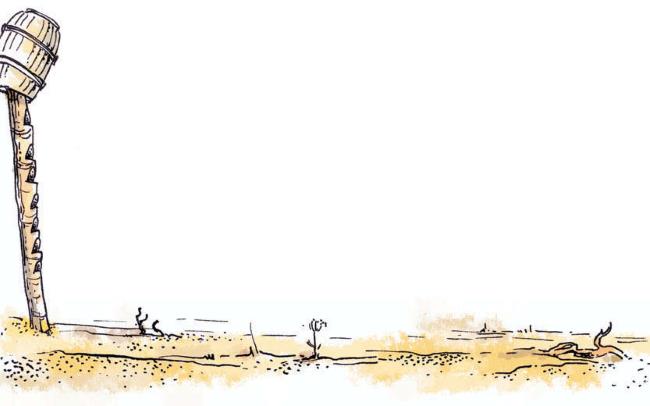 Верблюды стояли как вкопанные, как ненастоящие. Я боялся идти в середину стада и пошёл вокруг. А они как каменные. Мне стало казаться, что они неживые и что этот Джарылгач, куда я попал, заколдованный, и стало страшно. Я так их стал бояться, что думал: вот-вот какой-нибудь обернётся, ухмыльнётся и скажет: «А я…» Ух!.. Я отошёл и сел на песок. Какие-то торчки растут там вроде камыша, и несёт ветер песок, и песок звенит о камыш – звонко и тоненько.