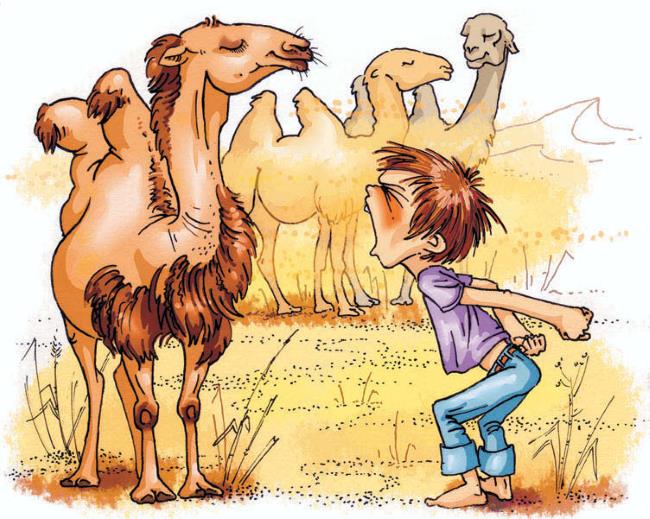 Я подошёл, встал против одного верблюда. Он стоял как каменный. Я вдруг стал кричать; что попало кричал во всю глотку. Вдруг он как шагнёт ко мне! Мне так страшно стало, что я повернулся – и бежать. Бежать со всех ног! Смейтесь, вам хорошо, а вот когда один… всё может быть. Я не оглядывался на верблюдов, а всё бежал и бежал, пока сил хватило. И показалось мне, что нет выхода из этих песков, а верблюды здесь для страху. И тут я увидел вдали избушку.