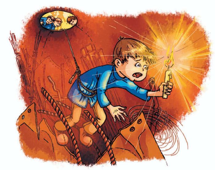 Привязали меня, дали свечку. Я в этот пролёт, как в гроб, спускаюсь. Думаю: если он живой, буду его целовать, дяденьку милого моего, лишь бы хоть чуточку живой только. И смотрю всё вниз, а что на верёвке я, это я и забыл, и что высоко. Свечка мало светит. Я до самого дна дошёл, и нет его, нет там дяденьки. Я стал кричать: «Дяденька, а дяденька!» Гудит в железе мой голос. Я на верёвке походил туда-сюда – нет, и не видно, чтоб был.