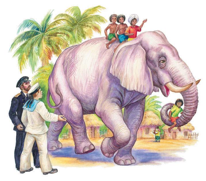 Слон вышел на берег; слонёнок ему хобот протянул, как руку. Слон заплёл свой хобот об его и помог ему на обрывчик вылезти.