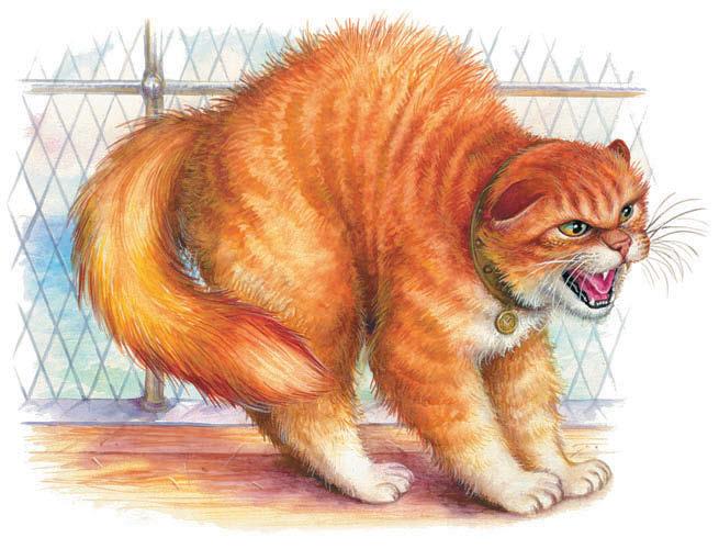 Он увидел мангусту и быстро пошёл, а потом начал осторожно красться. Он шёл по железной трубе. Она тянулась по палубе. Как раз у этой трубы суетилась мангуста. Она как будто и не видела кота. А кот был уж совсем над нею. Ему оставалось только протянуть лапу, чтобы вцепиться когтями ей в спину. Он выжидал, чтобы поудобней. Я сразу сообразил, что сейчас будет. Мангуста не видит, она спиной к коту, она разнюхивает палубу как ни в чём не бывало; кот уж прицелился.