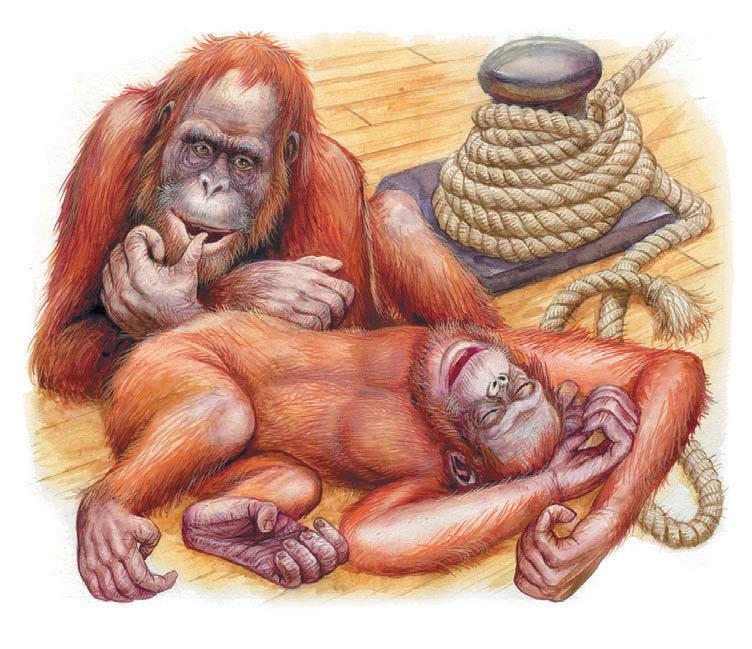 Асейкин без умолку болтал с орангом. Он хлопал его по плечу и переводил свои слова на английский язык.