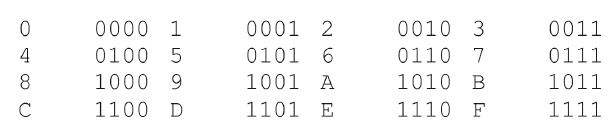 Рис. 2.13. Таблица шестнадцатеричных цифр и их значений в двоичной системе исчисления