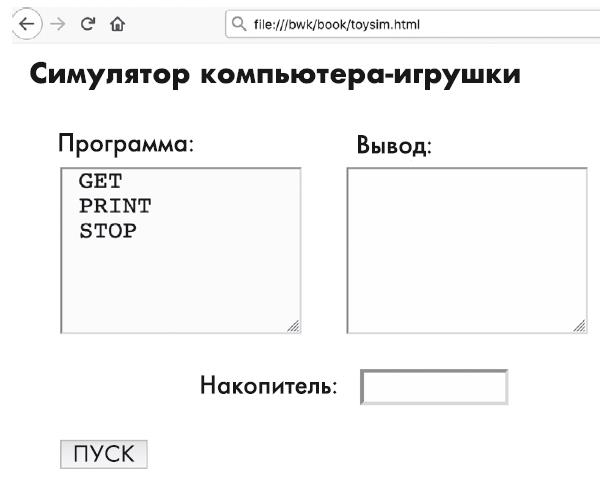 Рис. 3.2. Симулятор компьютера-игрушки с готовой к запуску программой