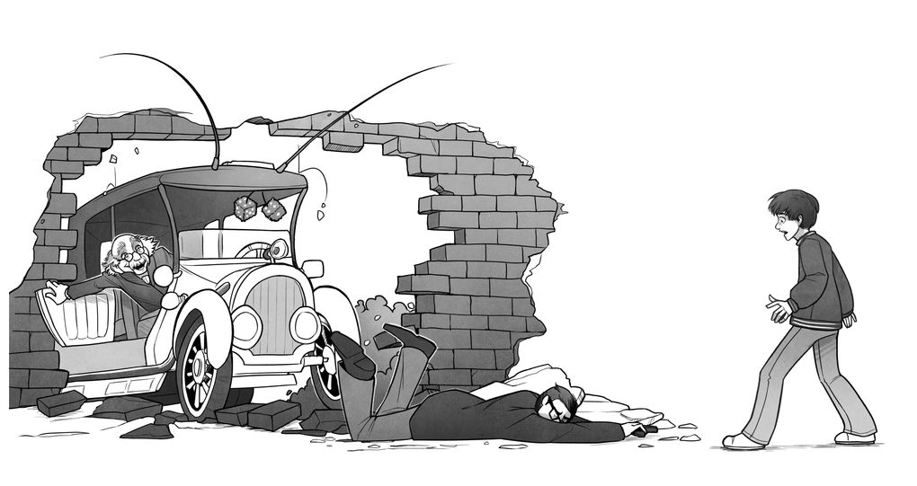 И в этот момент стену дома проломило нечто массивное – нечто очень похожее на радиаторную решетку старой Жестянки Лиззи. Я заорал, бросился в сторону, а куратор был сбит обломками и полетел кубарем.