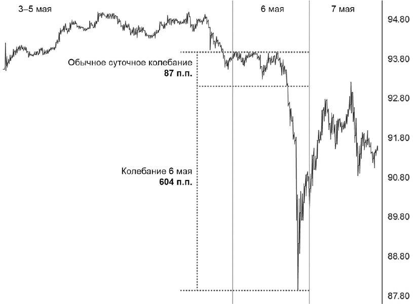Рисунок 0.2. USDJPY 3–7 мая 2010 г. (резкий обвал фондового рынка США 6 мая)