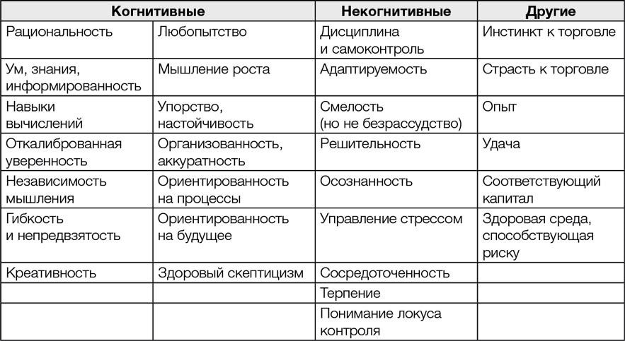 В трейдинге не существует какого-то единого икс-фактора. Успешная торговля сочетает в себе множество разрозненных навыков и характеристик. Вспомните формулу из главы 4: