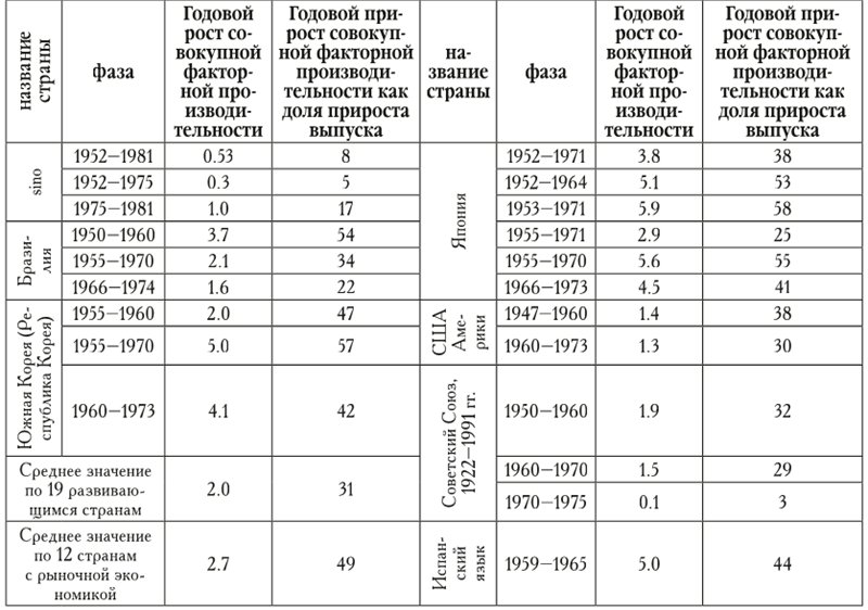 Международное сравнение роста совокупной факторной производительности